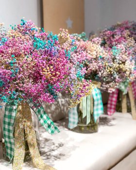 - También podemos realizar los cestos con paniculata natural y las coronas de las nenas a juego con la misma flor.