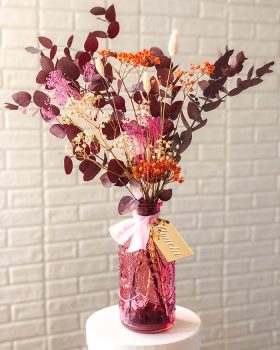 No. Las flores secas son las flores que han crecido de forma natural, han sido cortadas y puestas en agua para su posterior mantenimiento y tras marchitarse por el paso del tiempo se han secado. Dependiendo de que tipo de flor sea no podrás mantenerla porque se pudre al secar. Pero si que es verdad que hay otras flores o verdes que tienen un secado muy bonito, como es el caso del eucalipto o la paniculata. ¿Su principal diferencia con el preservado? El color y elasticidad. Si las tocas o mueves se parten, mientras que las preservadas mantienen su elasticidad e intensidad de color.