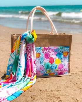 Maxi bolso MARLAFRÁ. El bolso definitivo para el verano o tus viajes. Capacidad máxima, varios compartimentos, bolsillo impermeable en su interior para bañadores mojados. Cuenta con unas cómodas y acolchadas asas de algodón que te harán más fácil el transporte de tu bolso cuándo esté lleno. Es un bolso perfecto para las mamis que van a la playa o la piscina y necesitan llevar muchas cosas. Una vez lo pruebes no querrás otro.