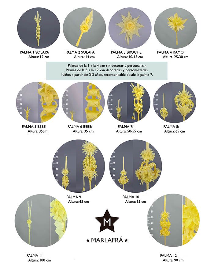 Palmas de la 1 a la 4 van sin decorar y personalizar. Palmas de la 5 a la 12 van decoradas y personalizadas. Recomendamos que los niños a partir de 2, 3 años recomendamos desde la plama 7. El modelo 5 y 6 está pensado para bebés.