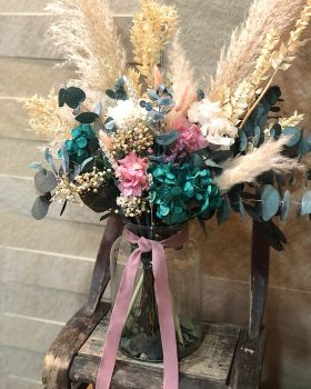 No. Las flores secas son las flores que han crecido de forma natural, han sido cortadas y puestas en agua para su posterior mantenimiento y tras marchitarse por el paso del tiempo se han secado. Dependiendo de que tipo de flor sea no podrás mantenerla porque se pudre al secar. Pero si que es verdad que hay otras flores o verdes que tienen un secado muy bonito, como es el caso del eucalipto o la paniculata. ¿Su principal diferencia con el preservado? El color y elasticidad. Si las tocas o mueves se parten, mientras que las preservadas mantienen su elasticidad e intensidad de color.