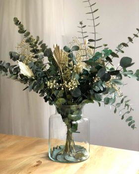No. Las flores secas son las flores que han crecido de forma natural, han sido cortadas y puestas en agua para su posterior mantenimiento y tras marchitarse por el paso del tiempo se han secado. Dependiendo de que tipo de flor sea no podrás mantenerla porque se pudre al secar. Pero si que es verdad que hay otras flores o verdes que tienen un secado muy bonito, como es el caso del eucalipto o la paniculata. ¿Su principal diferencia con el preservado? El color y elasticidad. Si las tocas o mueves se parten, mientras que las preservadas mantienen su elasticidad e intensidad de color.