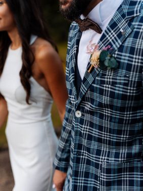 -Creamos el prendido a juego con tu ramo. Las flores de tu ramo en un delicado detalle perfecto para el padrino y el novio.